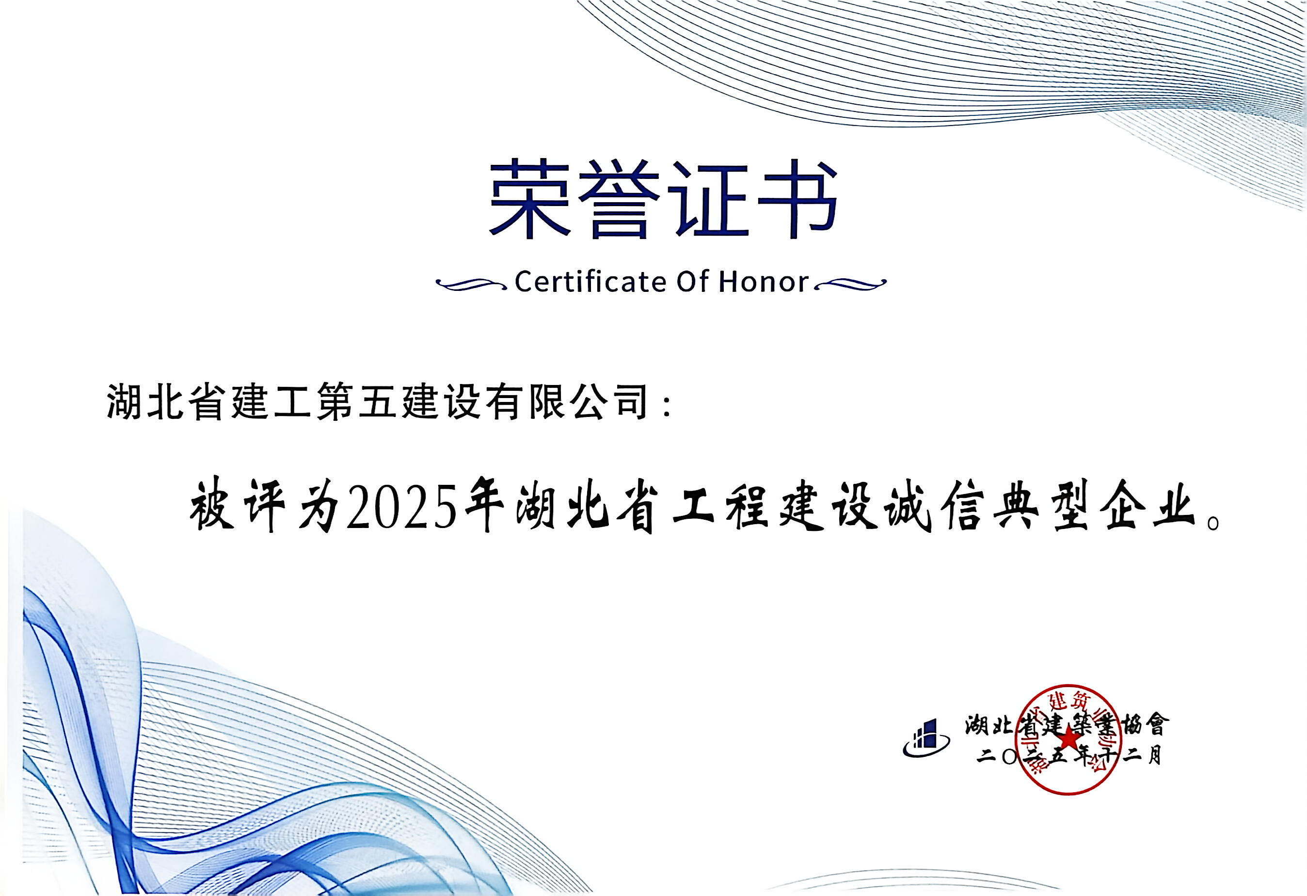 • 再添8項(xiàng)!湖北省建工第五建設(shè)有限公司榮譽(yù)持續(xù)刷新